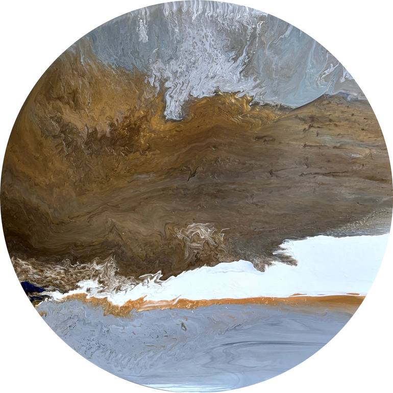 This is inspired by the Fraser coastline in Queensland from above, with the estuary flowing into the sea mix with the dunes. Part of a collection completed whilst exploring Australia and its beautiful landscapes. It is very shiny with a large gold/silver section sweeping across the middle. NOT...