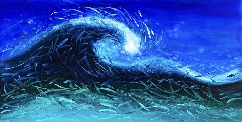 A Wave Of Fish is a cool, colourful action packed painting. I am endlessly inspired by the colours of the ocean, and the magical movement of schools of fish. I prefer to paint the fish in a slightly abstract style to capture that movement. In this painting, the fish catch a breaking shallow wave, an...