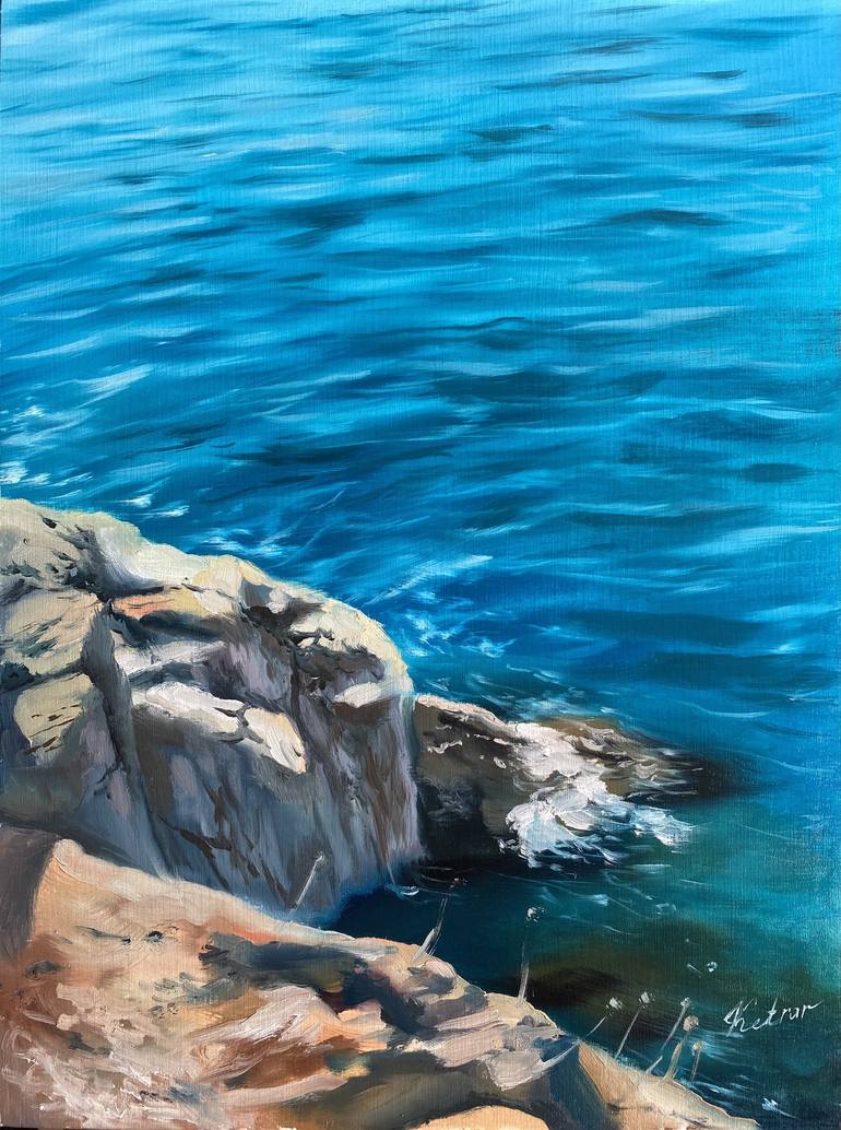 A sketch written in oil on special oil paper. An etude written based on impressions from a recent trip. Beautiful crystal water that beats against the rocks. I admired this water and decided to share it with Etude Etude written based on impressions from a recent trip. Beautiful crystal water that be...