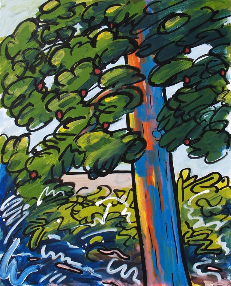 I love to paint trees. I think I may have been a tree in a former life. Anyway, this tree is not far from my house and I think it's lovely. I painted the initial painting from a photo of that tree, and the outlines later, after the paint dried. Both processes are meditative and involve unplugging f...