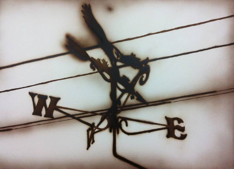 Weathercock and Electric Wire, Oil on Canvas, The painting was painted in 2013. 'See-ya Series'. The artwork was painted by brush and airbrush.