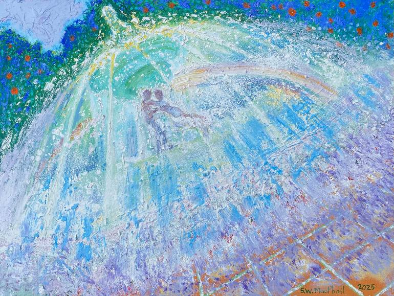 I have painted a few fountains as subjects, usually imagined. They have a similar symbolism of purity as seen in Renaissance paintings. The water of life and love; annointing. I have tried to convey a feeling of happiness.