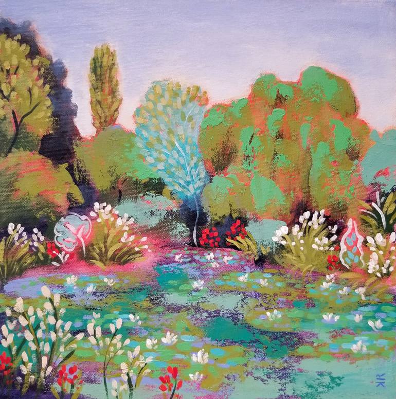 In crafting this piece, I embraced the fluidity of acrylics to evoke a serene embrace with nature. The impressionist strokes capture the gentle sway of trees and the delicate dance of waterlilies, creating a harmonious symphony of color and light. I hope to convey the tranquility and renewal that a...