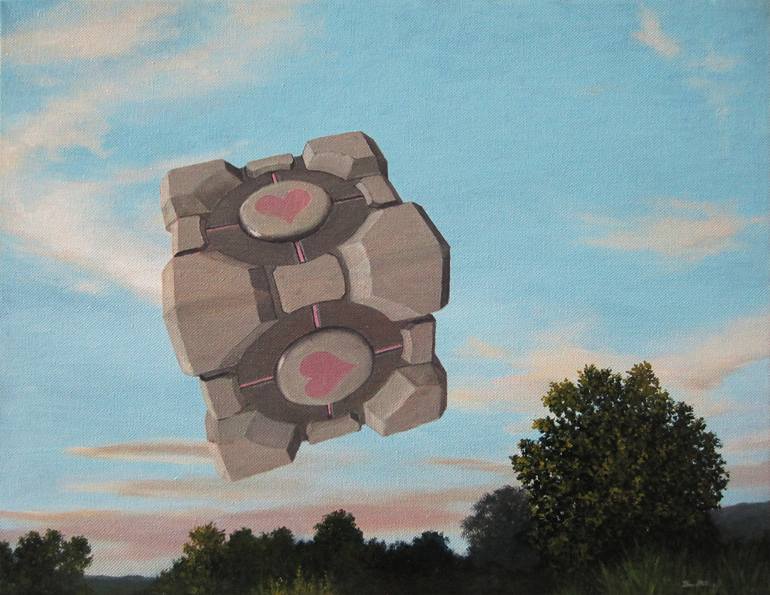 For those of you who don't immediately recognize the weighted companion cube, it's a character from the video game, Portal. After all it went through in that game, the companion cube deserved a frolic in the park. This is an homage to the character, with a nod and a wink to the crew at Valve. Oil ...