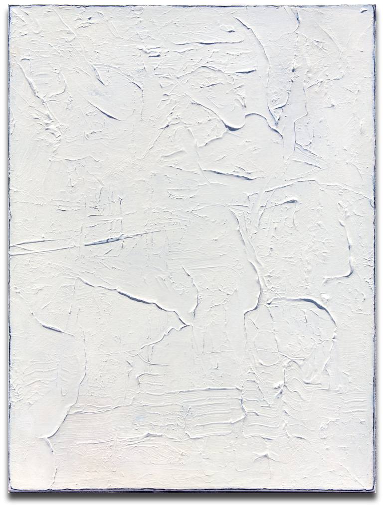 I love minimal art but I like to put in a lot of work. A neutral off-white abstract of raised lines, marks and spaces. A painting that changes significantly as the lighting changes. Painted sides. Signed on the back. Ready to hang.