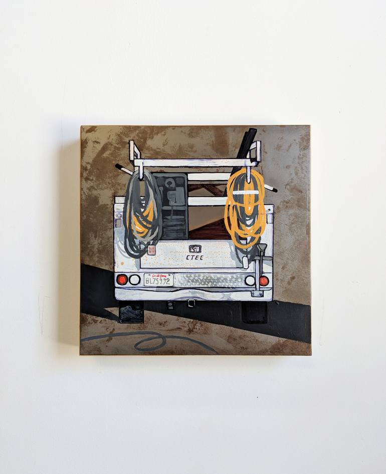 Part of an ongoing series on work & utility trucks in Los Angeles. This truck was photographed curbside in West Los Angeles. The piece is acrylic / mixed media, created directly on a steel panel, mounted to wood. For the past several years I have been photographing and painting service work trucks...