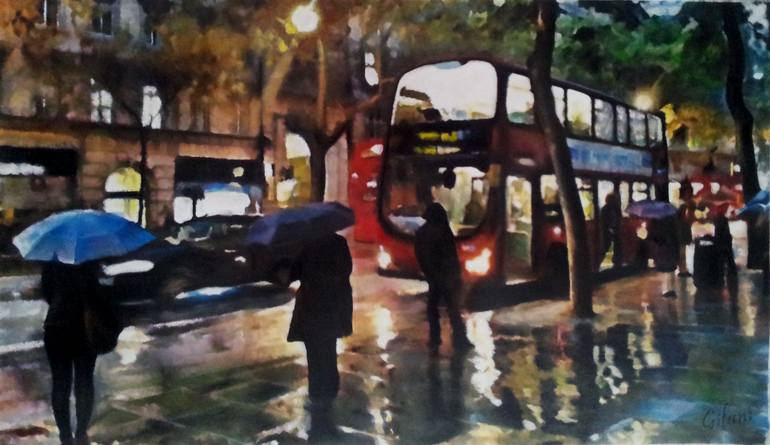 Wet Rush (London Holborn) A unique mix of Watercolour and Pastel