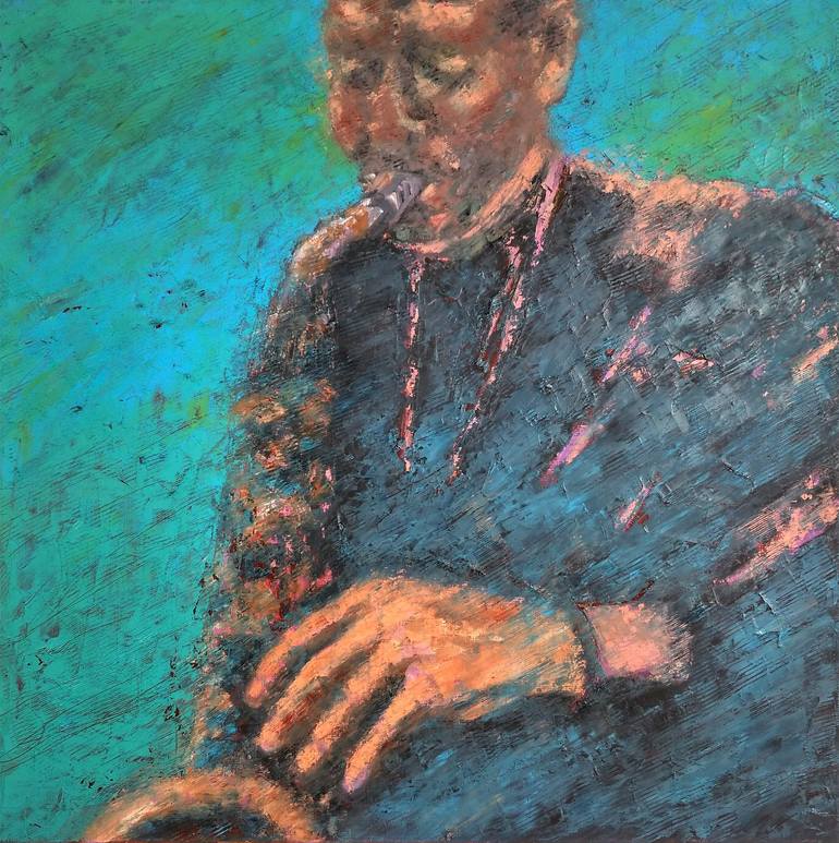 This sax player gets a little lost in the haze of club smoke. Is it John Coltrane? Sidney Bechet? Charlie "Bird" Parker? we’ll never know. he’s lost in his music, to our delight. What counts is the music that makes us dream as we dream this painting of Albina. In this work, I captured t...