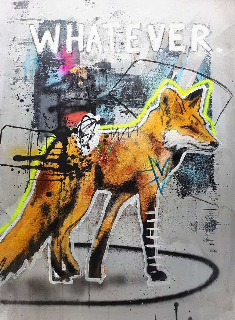 Acryl, spray paint, gesso, charcoal and marker on heavy weight canvas. Ready to hang.