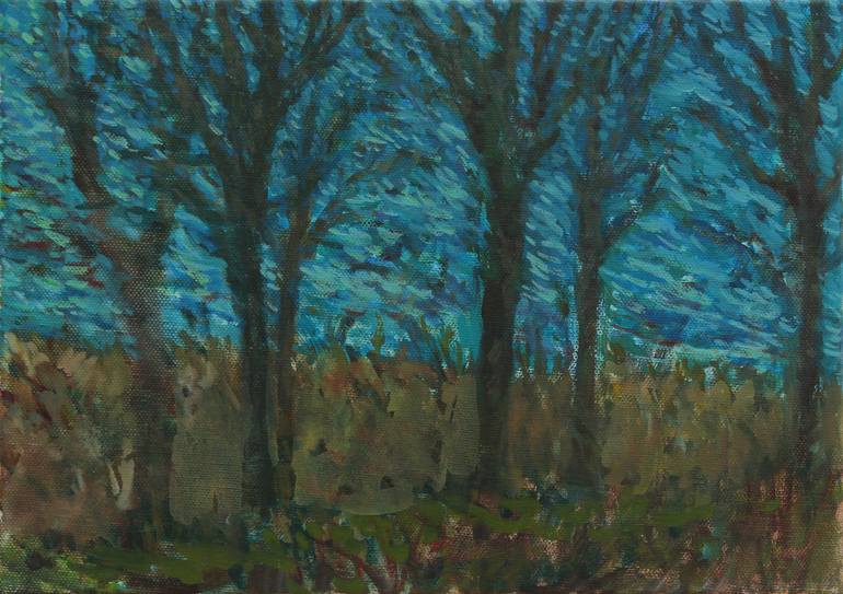 When the Night is Near, 2009, acrylic on canvas, 25 x 35 cm Acrylic painting on canvas – with riverside or river bank of Sava in the nightfall time. Sava river is one of the major rivers in Slovenija. The flow of the river is in vital movement: in the first plan on the painting is the river bank wi...