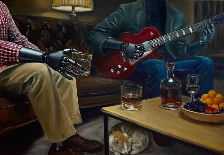Kryvych is a contemporary multidisciplinary artist born in Kyiv, who studied art in both Kyiv and Madrid. Anna explores the mechanisms of human interaction with the world through artistic practice. Her works reveal deeper layers of reality, truth, and existence. She investigates themes of dehumanization, estrangement from nature, and immersion into artificial constructs that distort our connection to the essence of life. By creating visual narratives that resonate with philosophical and apocalyptic concepts, Anna seeks to uncover the hidden forces shaping human experience — particularly through the lens of presence and the exploration of extreme existential boundaries. AS “Through my work, I explore the shifting boundary between the real and the simulated — between the real body and its artificial extinction. I am drawn to moments where physical presence becomes a gesture, a shell, or a trace of what was once direct experience. My practice is rooted in observing how technological environments and constructed realities reshape our sense of embodiment, desire, and memory. I work across painting, sculpture, and object-based installation to reflect on the conditions of posthuman life. In particular, I examine how actions once rooted in awareness — bodily rituals, gestures of care or discipline — are increasingly performed as automatic repetitions within a mediated world. These repetitions, though familiar in form, often lose their connection to meaning. My recent works also engage with themes of posthuman ecology, chromatic surfaces, and speculative forms of future bodies — animals, robots, and hybrid beings caught between evolution and extinction. Whether working with vacuum-sealed objects, metallic skins, or chrome-finished creatures, I seek to capture what it means to exist when nature itself begins to wear a mask. i ask: — What happens to corporeality in a world where everything can be copied? — Can art still function as a site of resistance in a culture of seamless simulation?