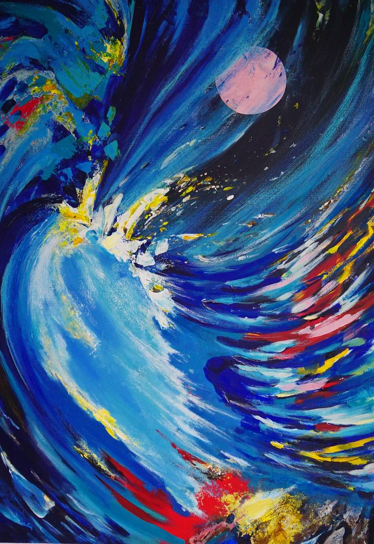 From time to time I like to experiment with abstract painting, use some abstract elements in my works, but still with symbols or characters which the viewer can interprete in his or her very unique way. For this work I have taken a night sky as my inspiration. I think every of us can see some ...