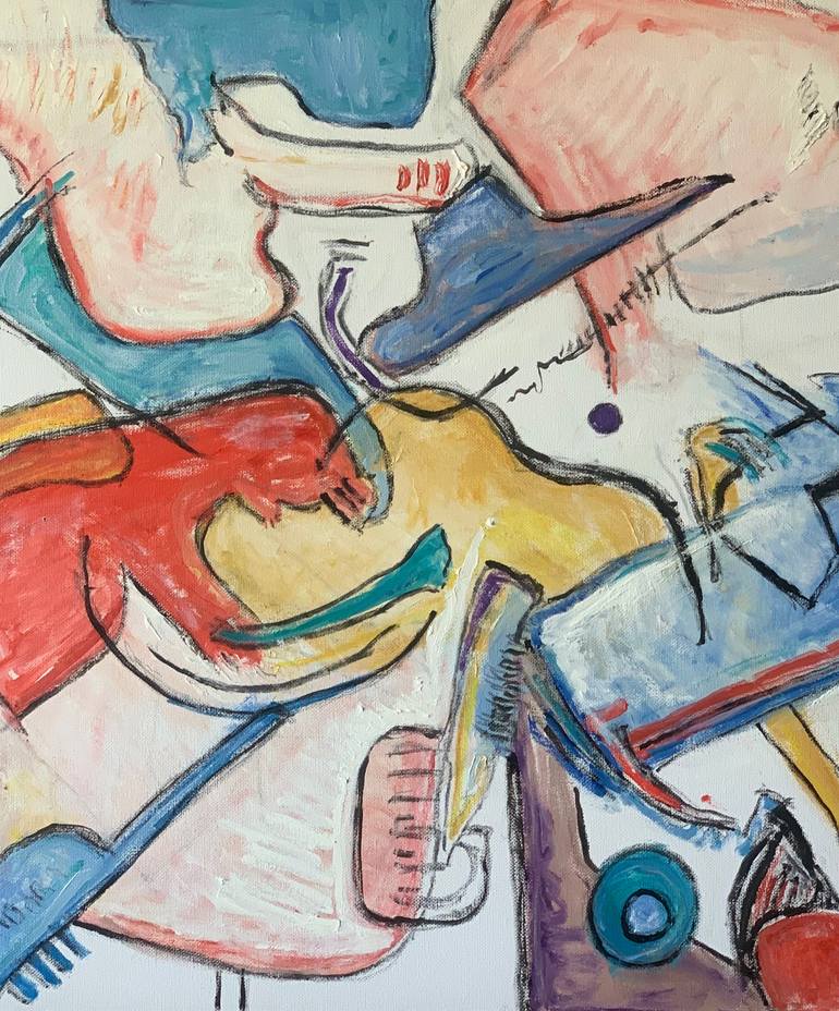 The work is an abstract expressionist painting done during Covid 2020- a lot of us have reexamined our lives and wonder "Which Way" do I go next????