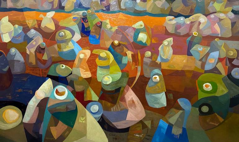 Mohamed Abou Elwafa Egyptian b. 1987 Graduate of faculty of Fine Arts Alexandria University class 2009, Painting department Participated in alot of Exhibitions and international symposiums: First Alexandria symposium for Mediterranean countries, 2014 The Third and Fourth International brullus symposium, 2016 and 2017 The Ninth Period of Luxor International symposium for painting, 2016 Gerni-k Exhibition, MH Gallery, Spain, 2017 Solo show at Artsmart Gallery, Egypt, 2018 Has many collectibles in the Egyptian Ministry of Culture, London, Spain, and Some people inside Egypt and abroad The artist's experience revolves around the popular heritage, customs and traditions of Egypt and the birth and manifestations of the various celebrations and rings of memory and what distinguishes the Egyptian character and the streets and cafes that began to disappear, and the artist relied on the combination of realism and abstraction without entering into accurate details may distance the eye of the recipient from the situation he wants to reach And rely mainly on the balance between busy and empty and hot and cold colors and the search for new color relationships and motivated by the love and passion in color.