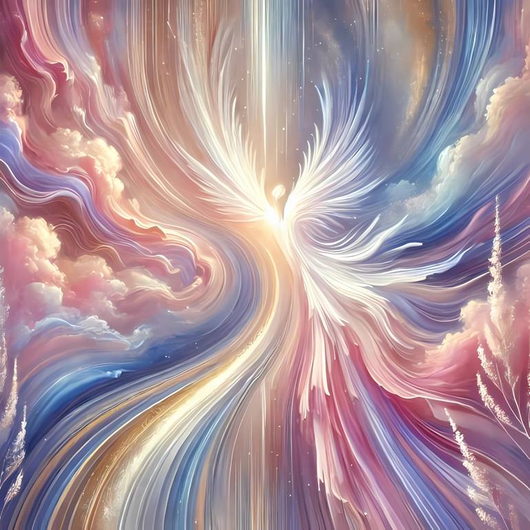Hello my viewer! Inspired by this painting, I envisioned a divine connection between the heavens and the earth, where angelic light flows freely through the cosmos. This stunning digital artwork captures a celestial being surrounded by soft, flowing clouds and radiant colors. The glowing angelic fi...