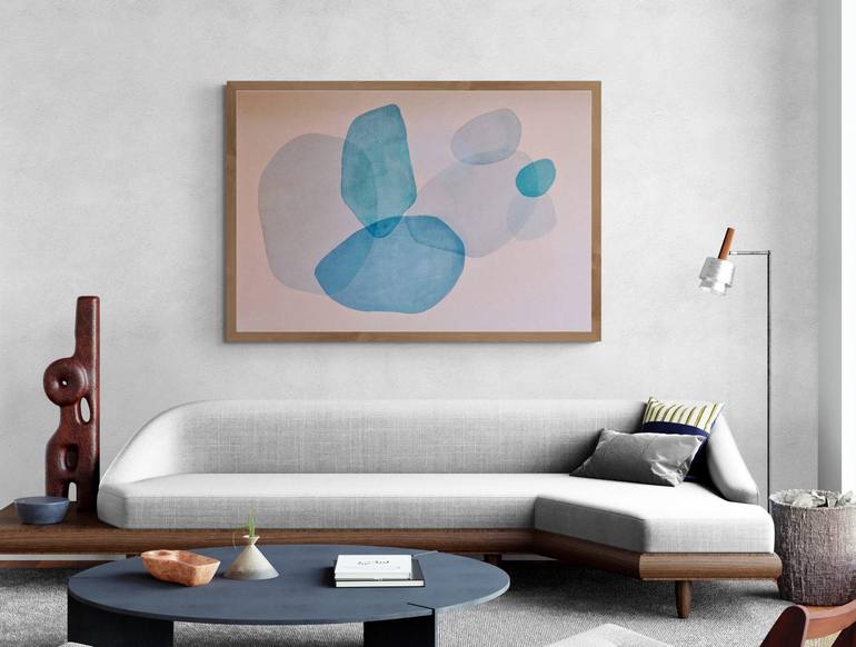 "Whispers of the Sea" is a minimalistic painting measuring 70 cm x 100 cm, created using subtle blue tones that evoke the calm and depth of the ocean. The piece captures the quiet, almost imperceptible movements of water, with soft gradients blending seamlessly into one another. The gentle swirls of...