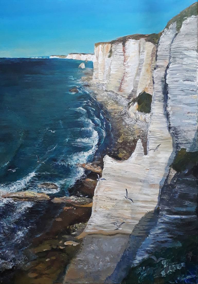 Stone and water, two ultimate enemies. No matter how solid the stone is the water will find a way to shape it. Here, on the shore of Etretat, natural erosion created a wonderful landscape that attracted artists of all times. And I wasn't an exception. This painting was part of an exhibition "Landsca...