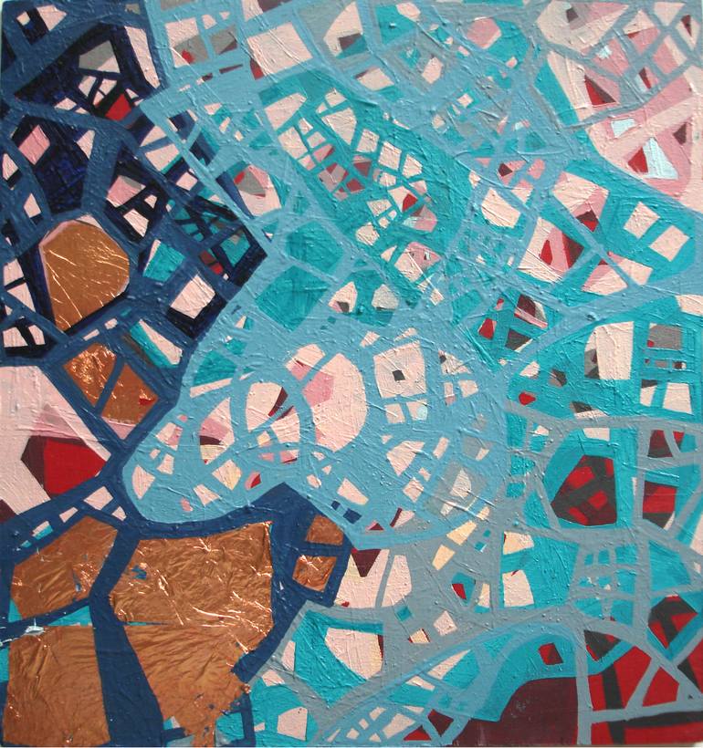 Oil paintings on wood panel with copper leaves THE ANALOGY I LIKE TO USE WHEN DISCUSSING MY PAINTING PROCESS IS THAT OF FORMULATING A MAP, A LIFE MAP. MY WORK REPRESENTS AN ENDLESS DEVELOPMENT OF GROWTH, CHANGE, BALANCE AND EMOTIONS THAT ARE INTEGRAL TO MY PERSONALITY AND MY BEING. IT IS IMPORTANT ...