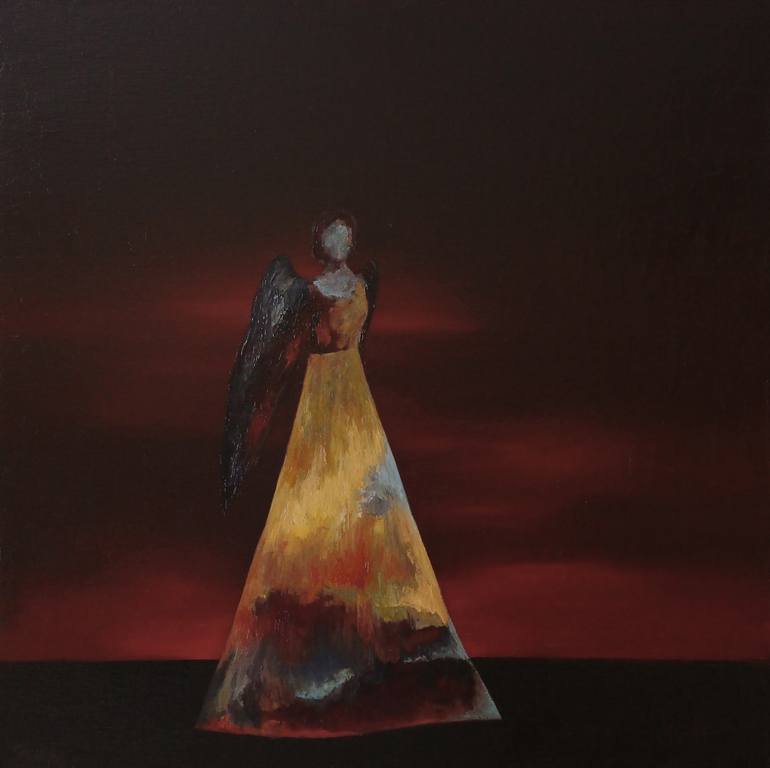 This is "Who Are These Angels CXXI", an original oil painting on Gallery wrapped canvas. This large painting measures 24" x 24" x 1.5 inches. The sides are painted black and it will be shipped ready to hang.