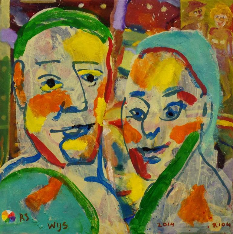 I studied journalism, but I wanted to be an artist. I visited two art academies in the Netherlands and it felt like coming home. It was 1975. I never finished them, I'm still learning. First inspired by the Beatles and Zappa, then Byrds and the Velvet Underground. Pop music, pop art, Warhol. Van Gogh, then Beuys, DaDa, Matisse, de Kooning, wow the world of paint and color. I was sure this was my way of contributing to the world. Painting, on the border between reality and feeling. Landscape, portraits, human relationships, communication, abstract or figurative, balance, yes, always color and lines, intention and spontaneity. Concept. I did many other things to earn money and continued painting. In 1993 I wrote a book with many of my drawings: 'Never shy again'. A modest success and a turning point, finding my own way as an artist. I became a trainer and continued to paint. I started studying Taoist philosophy in 2003, until now. Since 2011 I have had a large workshop in an old factory. I'm still learning, Rembrandt, Frans Hals, classical painters. Modern painters, Hockney, Freud, Basquiat, Kiefer. Mental landscapes, mental portraits, music. Language is part of my art. My personal quest, our human quest. Always back to nature and Tao. My work is diverse, colorful, experimental and expressive. Between figurative and abstract. In addition to paintings and drawings, I also make wooden sculptures. Looking for the light. Looking for peace, for everything and everyone. “Home is the way, there is no way home.”