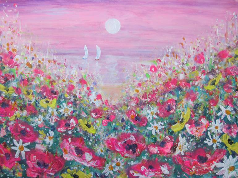 This large vibrant painting is on deep boxed canvas, ready to hang. Wild flower meadows are intoxicatingly beautiful and in this one near the sea you drink in not only the scent of the flowers and grasses but also the salty sea air. I love the colours too and the way they change throughout the day, ...