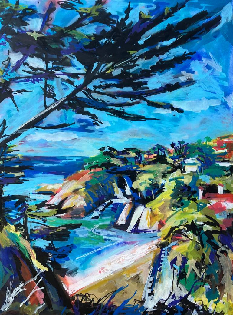 Painting of the view from Wildcat Creek in Carmel, California. Acrylic and Spray paint on canvas.