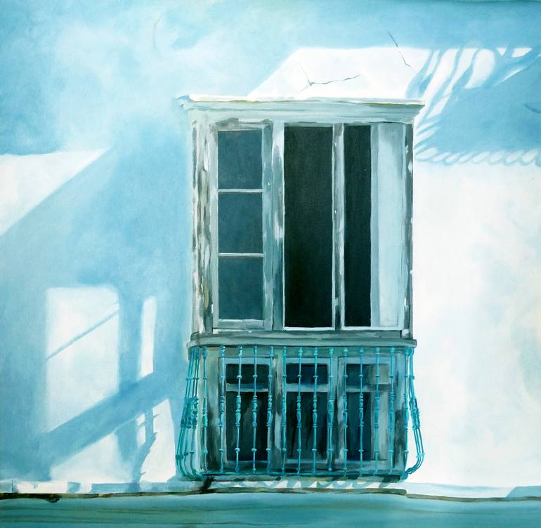Inspired by a trip to Malaga, Spain. I was fascinated by the architecture, in particular the original old windows and shadows formed by bright sunshine above the modern shopfronts. My image was worked from one of a few photographs taken on the trip. Much of my work is textile art but chose to paint...