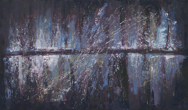 Dirty window in garage. Some distant lights are making a cosy mood in your mind... You can't stop watching details... This painting will be removed from the stretcher and shipped rolled in a rigid tube for economical shipping. This work has an additional material around the image area to allow for...