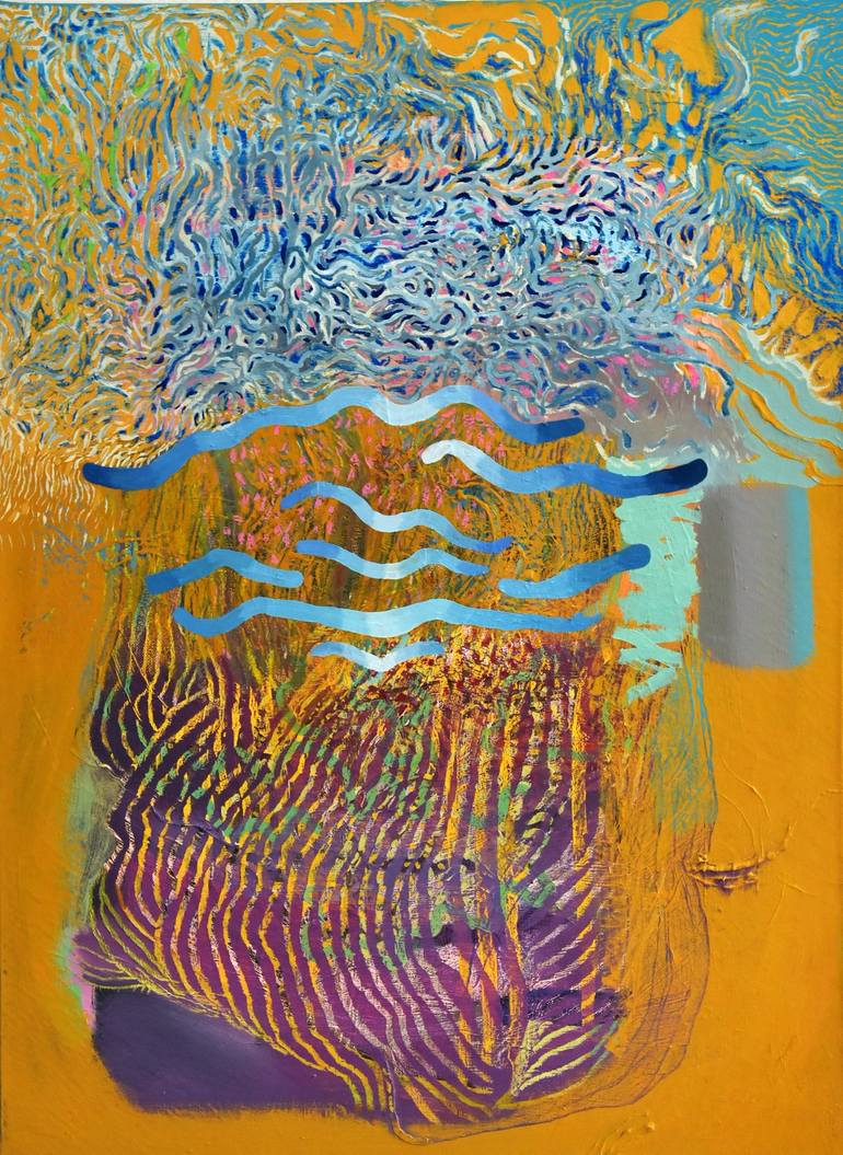 I noticed when analyzing the work of a weaver, that the weaving process is similar to the meditative creation-method which I create pictures with. Lines in any length and thickness and rhythm, form a figure initially, but later, concentrating on this act, they becaome shapeless. These paintings, created from the repetitions of tiny lines and by intuitive movements, are made onto a material (canvas) which is also formed by a repetition of a vertical-horizontal relationship. I have become more and more attentive in the base material itself, the usage of it and the method that procreates it. The linings of the weaving -the thread- is a rolled up, spatial line, which -by hiding up and down, occasionally showing itself- , expresses pudency and playfulness, while creating a whole of material, together with the rest of the threads. I began to embrodier into the canvas, weave from plants, plant seeds whose growing, rhytm, cycle made me wondering and contemplating
