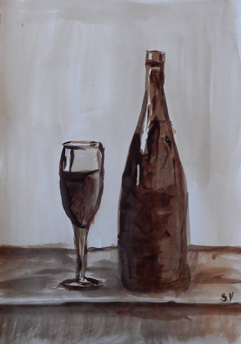 Wine bottle coffee painting. This is one of a kind original watercolor painting. ►100% handmade coffee painting on paper ►Dimensions: 41.5 x 29.5 cm. (unframed) ►To see the details of the painting; please click "ZOOM" to enlarge the images. ►It is made in an impressionistic style by using a brush ...