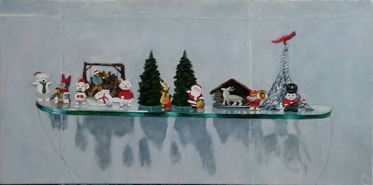 This is part of my Ornaments still life series. These are some of my personal Christmas ornaments displayed on a glass shelf in my bathroom for the holidays.