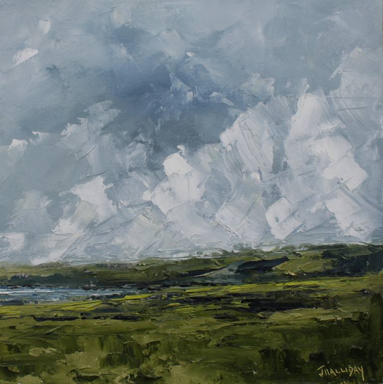 John Halliday's love of the coastline and the rugged countryside is evident in his paintings. The artist, who resides in the United Kingdom, aims to capture an impression or a feeling in his landscapes and seascapes, as represented by dramatic skies and weather. Halliday feels that by using fewer brush strokes, his pieces convey more emotion. He creates using oils on canvas.