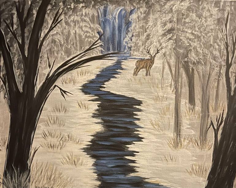 Painting is on a 16x20 white canvas with acrylic paints. Edges are finished so ready to display.