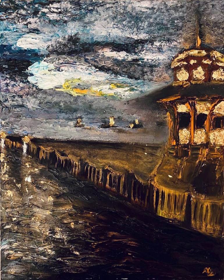 Beshiktqsh , Istanbul Dedicated to the music brand “ Cafe de Beyoglu “ Oil on canvas. City series / second artwork