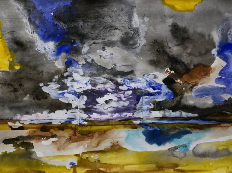 14 paintings - abstract landscapes with a photo as starting point - 61x43 cm 2021 - pigments, ink, sumi-e on paper. My inspiration is the photo (from a calendar) - the rest is my own imagination and the imagination of the viewer.