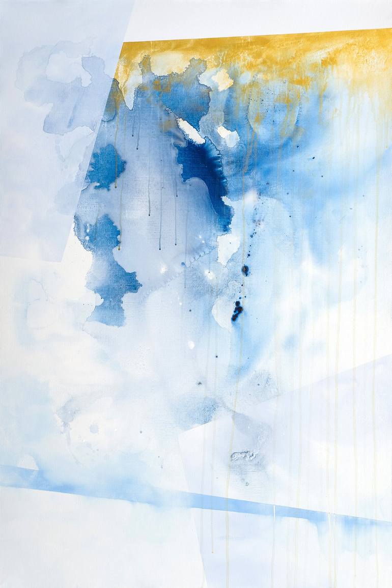"Winter in the crown" vertical painting has a very light and fresh character, where on a white background are some shades of blue with a golden detail at the top of the composition. The painting is finished with acrylic glossy varnish (photos were taken before varnishing). The work is ready to be ...