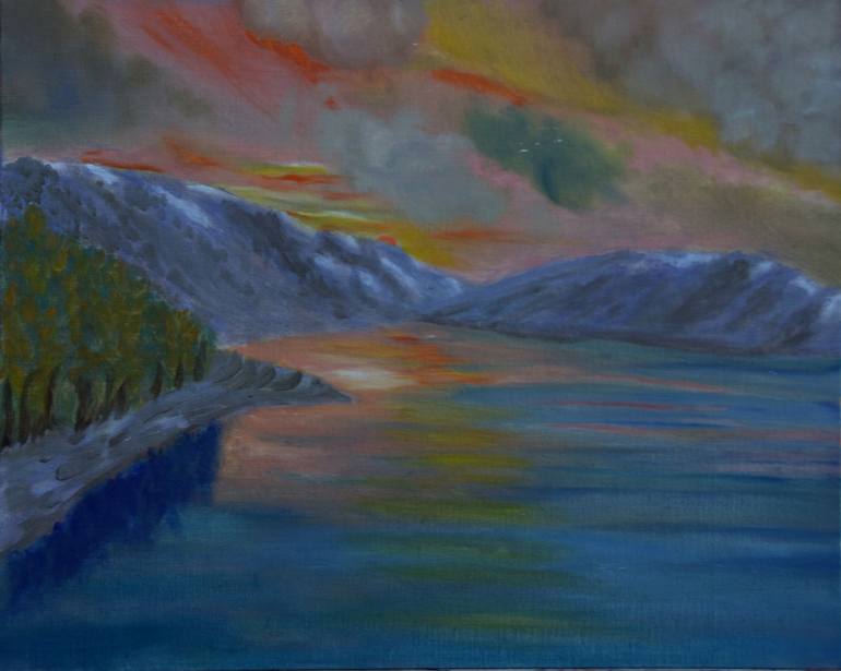 Once I moved to Norway in 1999, I fell in love with the nature and its raw serene beauty. I have tried to capture the mood of Norwegian winter evening sunset with snowy mountain and the fjord.
