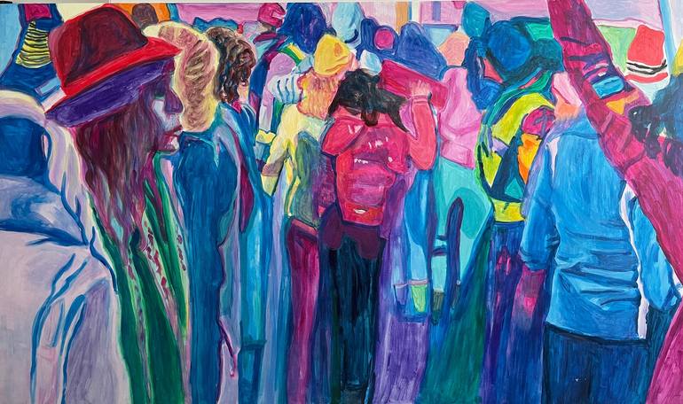 Statement My work explores the deep connection between humans and nature, rooted in my long-standing interest in folk traditions and their environmental wisdom. I am inspired by how traditional cultures understood nature as a sacred force connected to God, the universe, and spiritual well-being. Folk heritage carries a deep respect for life and all living beings, while offering protection, identity, and a sense of belonging within the community. My interest in folk tradition goes beyond visual elements: it represents a way of thinking that emphasizes harmony with nature, responsibility, and continuity between generations. Through expressive human figures, my paintings unfold in an illustrative and powerful style, reflecting the relationship between people, their environment, and cultural memory. Folk costumes appear as symbolic elements in my work, alongside visual influences from the 1970s and 1980s, which strongly shape my artistic language. My name is Eszter Szabó. I was born in 1979 and completed my studies as a decorative painter at the B.D. Art School in 1997. After graduating, I worked in my profession for several years, including the restoration of frescoes and historic walls in some of the largest archives in Hungary, collaborating with a highly respected restoration company.