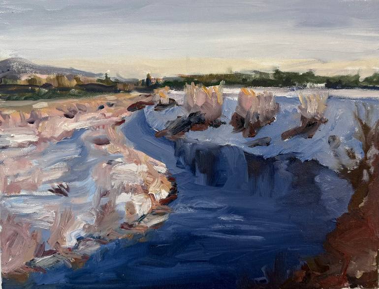 I’ve always been attracted to painting outside . A small study was painted outside near the canal to capture the light and color . Once I was back in the studio I enlarged it and tried to stay true to color . This was painted in suburbs of Vancouver.