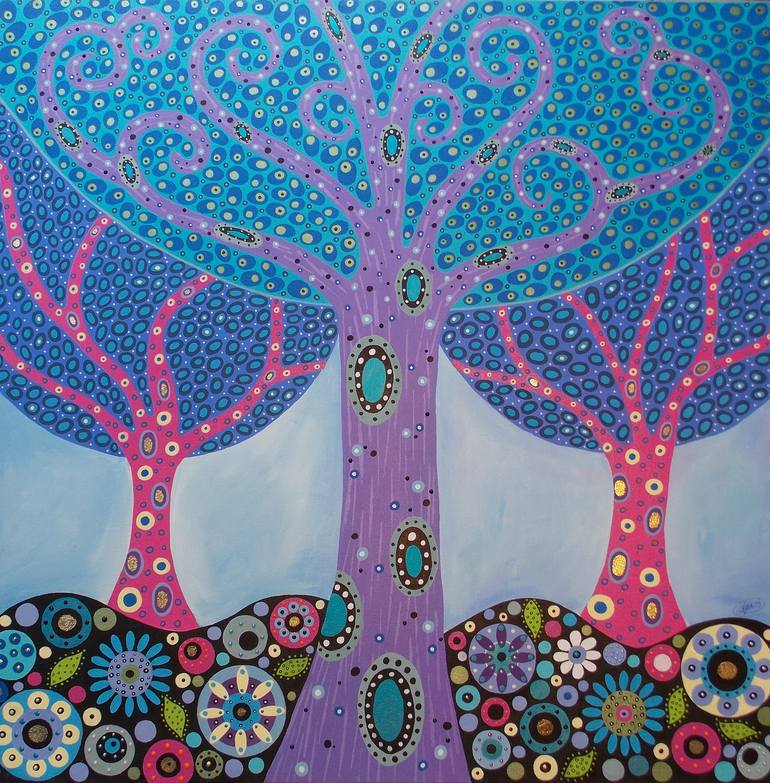 Thank you for checking out my portfolio. I'm based in the San Francisco Bay Area where my work is shown in galleries, corporate spaces, restaurants, and cafes. I have had numerous solo exhibitions over the years including an exclusive event in which I partnered with Mercedes-Benz of California. Recently, one of my paintings was chosen for the cover of the college textbook, “Gendered Lives”, by Julia T. Wood. During my past three decades as an artist I have been an ardent supporter of a number of youth art programs in the Bay Area and spent time an instructor at the Lilian Paley Center for the Visual Arts in Oakland, California. My inspiration is my personal experience with love, loss, and infinite joy. My paintings are explorations of my dreams, emotions and imagination. Much of my art is interwoven with intricate patterns and the delicate application of gold leaf to further conceptualize my themes. All my paintings have deep, personal meaning. They come from my heart and I hope they touch yours.