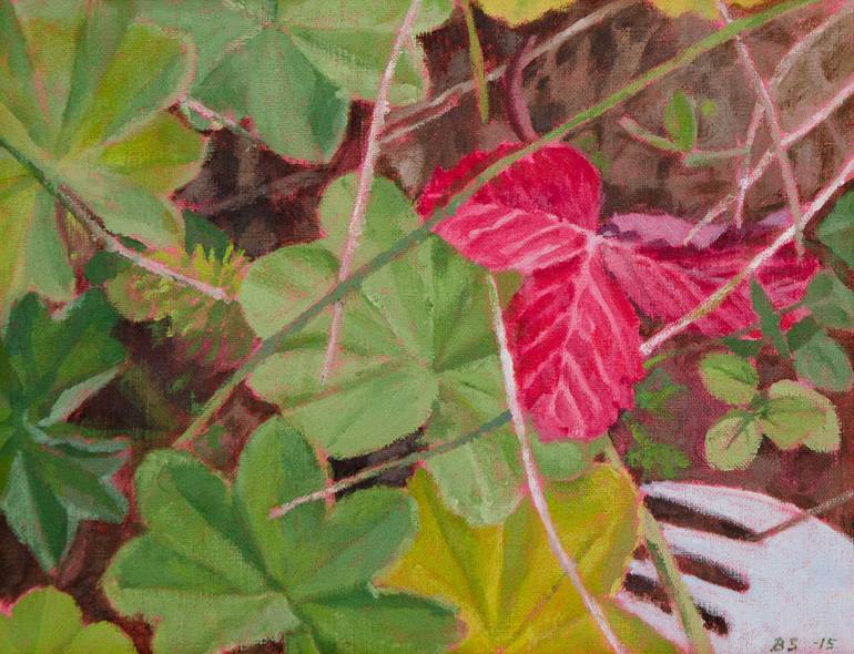 It was a beautiful autumn day with vibrant colors. I aimed the camera to the ground and placed, for example, a plastic bag on the edge of the viewfinder. Based on my photo I have then painted with acrylic on canvas. Traces of consumption everywhere.