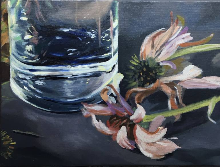 Dried, thirsty flowers wither beside a wealth of fresh water.