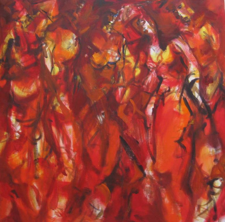 Medium: Mixed technique on canvasYear Created: 2006 it is about the interactive relation and the watching with mixed Feelings into the other. was created in Aix en Provence. the communication of the Bodys through the way of Standing.