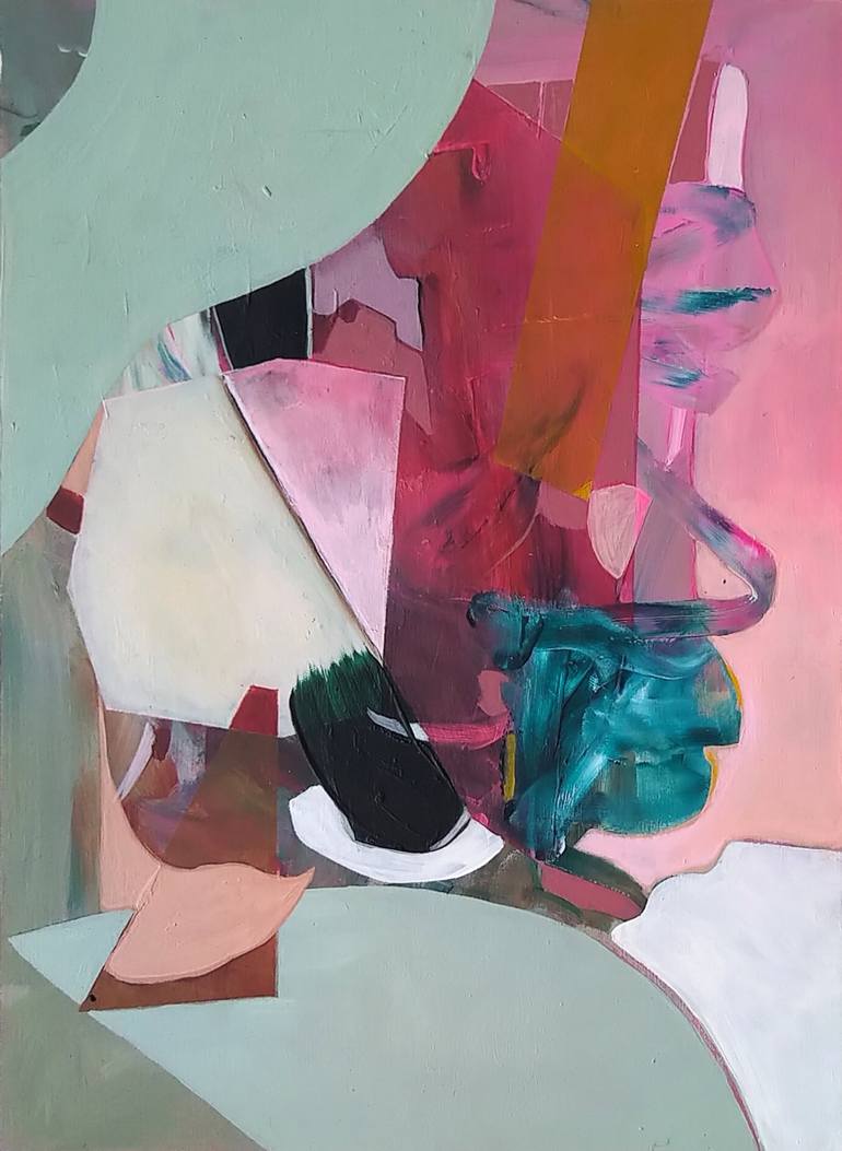 Hello there! My name is Marleen Pennings, I'm a visual artist, working primarily in painting. Originally I'm from The Netherlands, currently I live and work in the south of Germany. I studied Fashion Design and Illustration, but concentrated fully on painting after graduating. My work is about the beauty and strangeness I find in the concept of contrast. I'm inspired by imperfections in everyday life, unusual and unforeseen fragments, I experience around me. Clashing colours, mismatched textures or a song that skips a beat. These fragments of aesthetic are distilled from their surroundings and translated into paintings and collages and are the ongoing pace in my art. My love for textile patterns and textures sparks the visual process and creates hints of weaving amorphous rhythms with paint. My use and mixing of colours, creating my colour palette, invites ever-changing perspectives in my images. Transparent and opaque mix, dark and light layers of colours with graphic and organic forms; carefully piled on top of each other.
