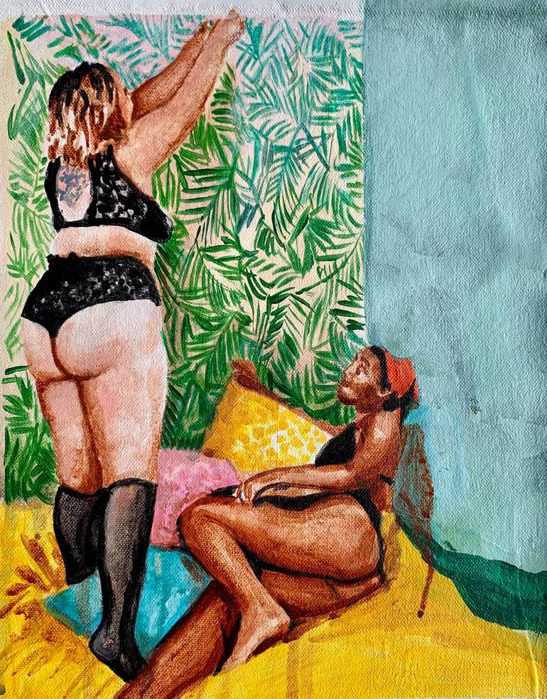 A series of small portraits featuring women being comfortable in their body participating in mundane activities or captured in moments of rest and acceptance.