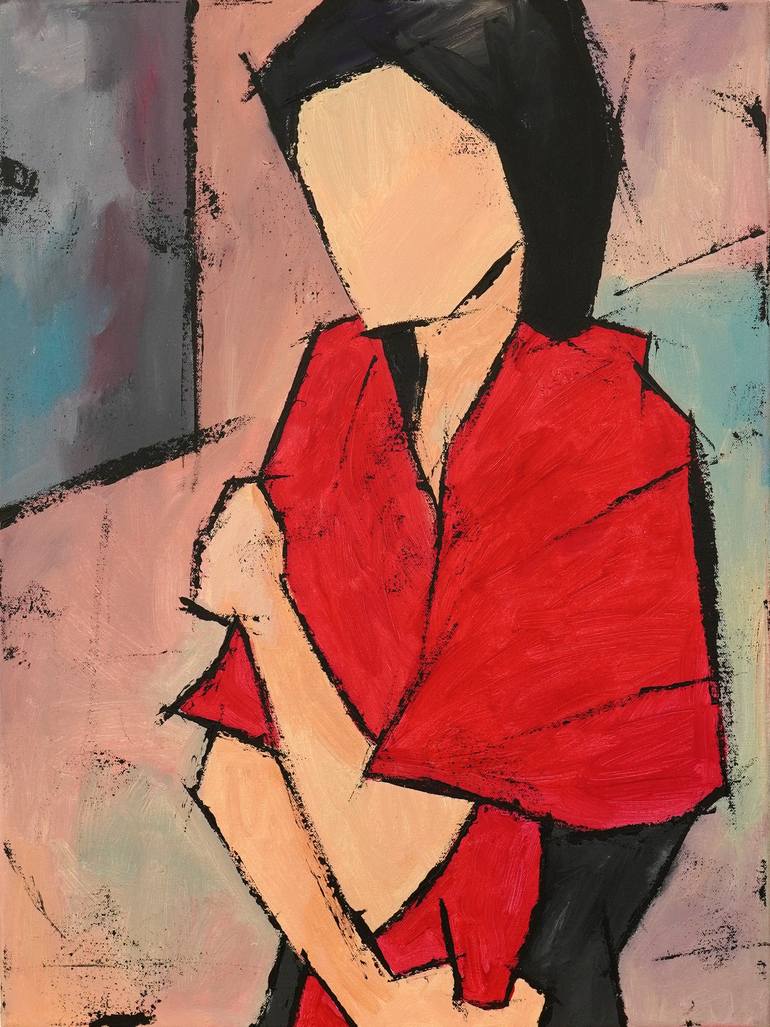 This original acrylic painting “Woman in a Red Scarf” by TANYA GRABKOVA, 2017 Material: Acrylic, Stretched canvas