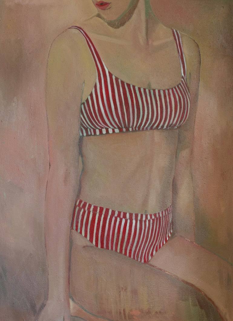 “Woman in a striped swimsuit” Oil on canvas, sand 36х48 inch