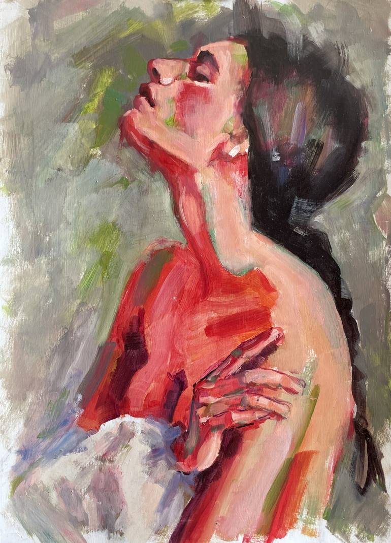 In this work I wanted to combine a little bright and contrasting green with a feminine image. It turned out to be quite expressive.