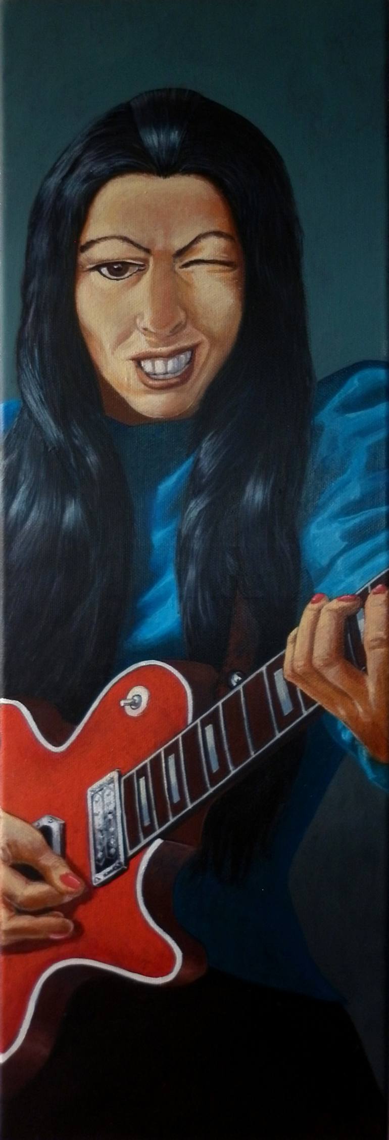 Ms Reilly a former student of mine at an adult class I now see often on line as a social media selfie artist. she posts her image and some times I just react as in this one which I converted her cheeky wink into a guitar wielding pop star