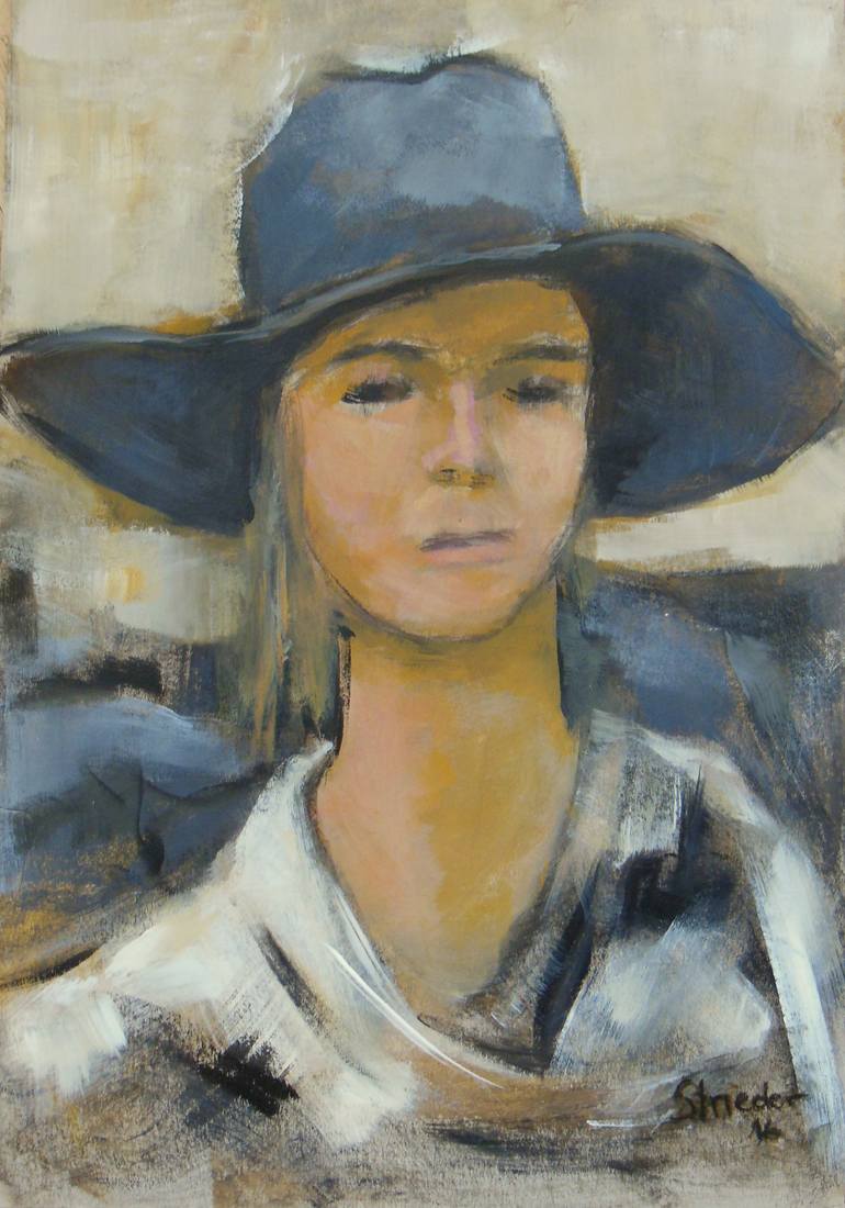 Woman with hat acrylic carton, 36 x 51 das Bild wurde am mittwoch an einen Malerfreund verkauft